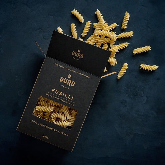 We craft locally grown and produced artisanal pasta, completely traceable from farm to plate. Made from 100% Australian durum wheat, sustainably grown, harvested, and milled in the “Golden Durum Triangle” of northern New South Wales, every piece of Duro pasta celebrates superior flavour, nutrition, and artisanal quality.