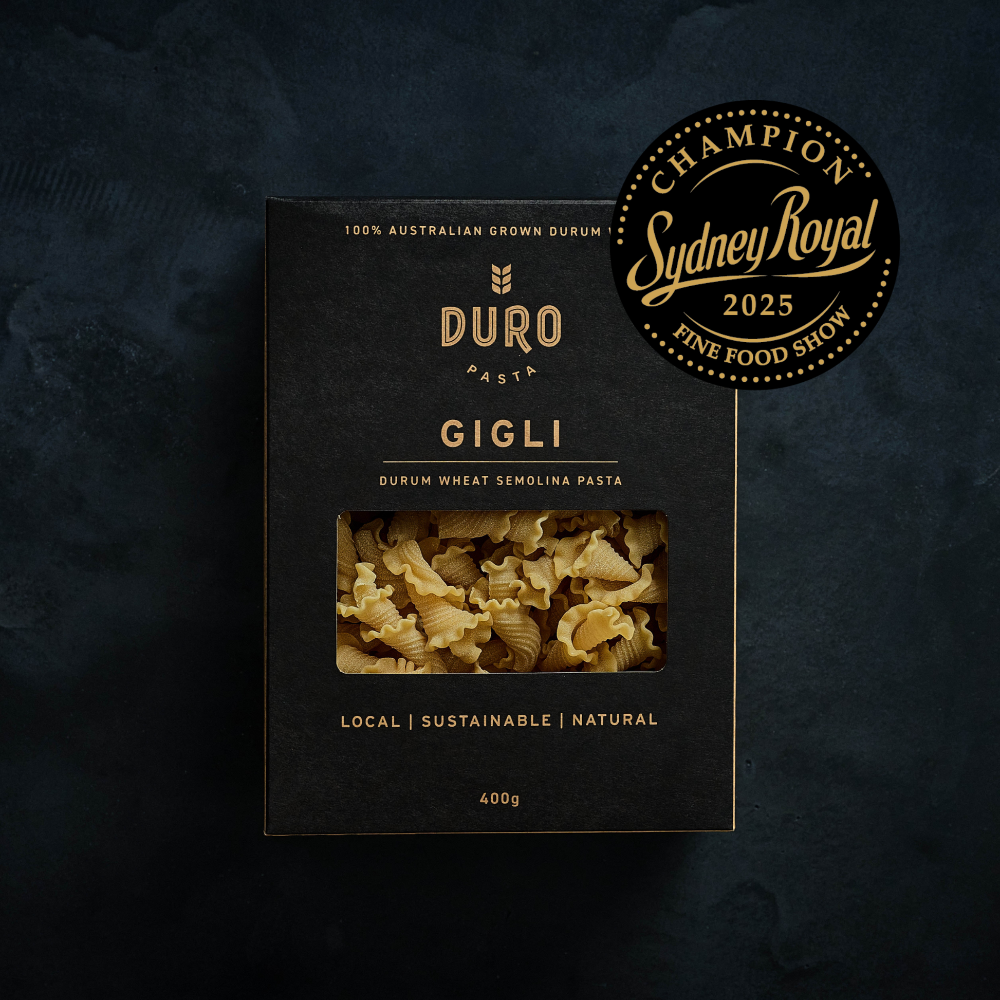 Pronounced "Jee-lyeh" which means "Lillies" in Italian. Also known as Campanelle (little bells) or Trompetti (trumpets), this twisting flower shape blooms open inviting sauce to fall within its frilled and ruffled layers. Delicate yet robust, this pasta is beautiful to the eye and a joy to sink your teeth into. A staff favorite at Duro as well as gaining a strong following amongst our chef mates, the latest addition to the Duro Pasta range makes every sauce a delight to eat and easy to present.